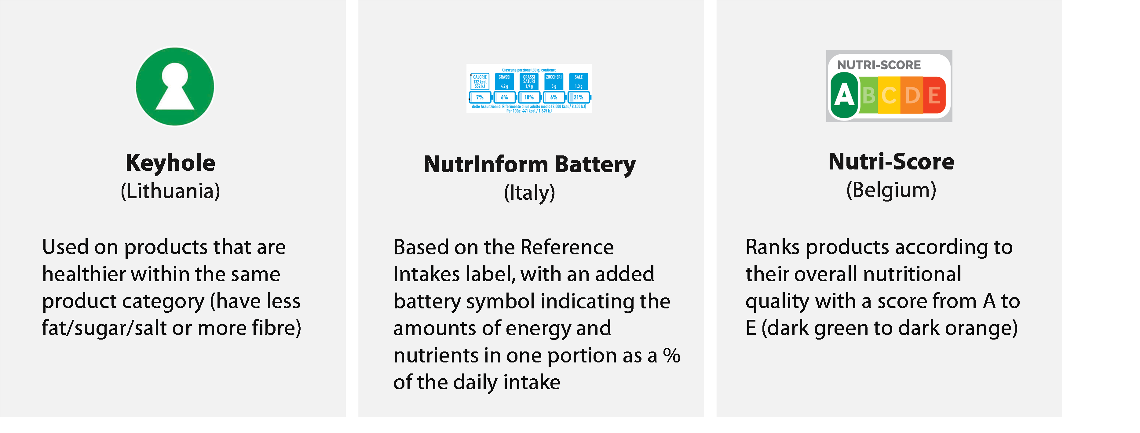 Keyhole and Nutrinform Battery (figure 11, 12 and annex III).