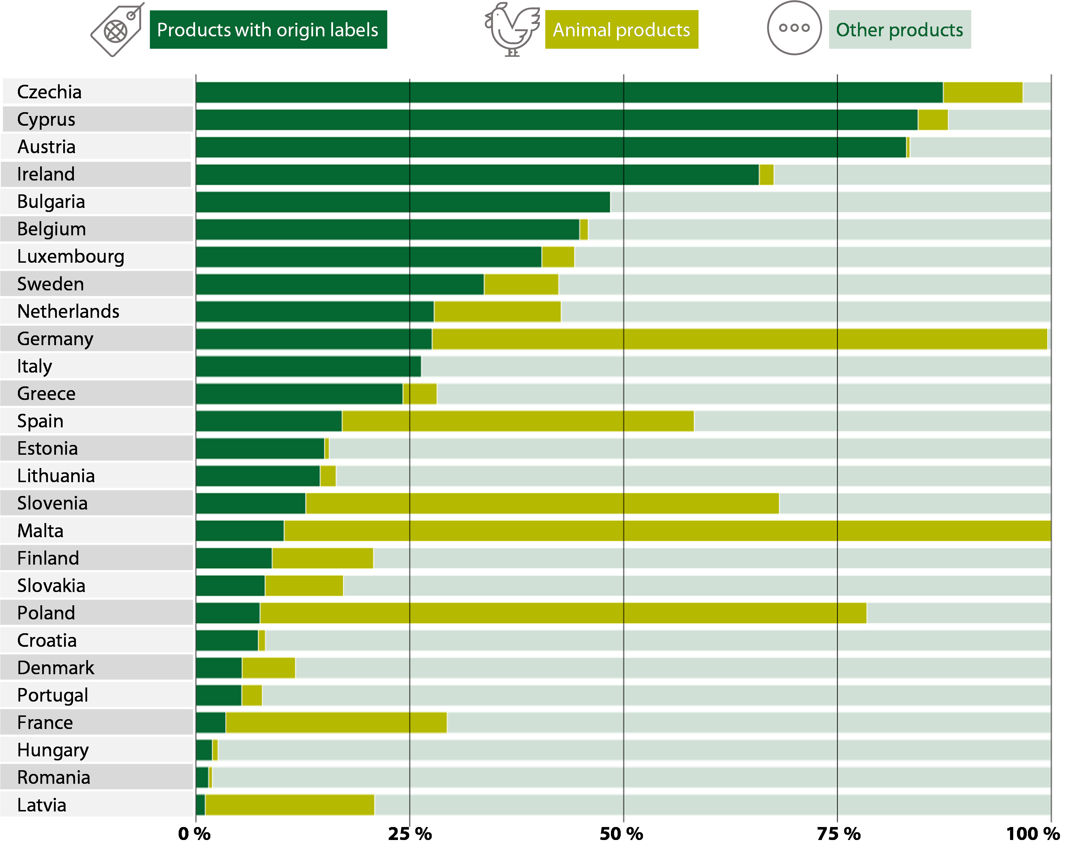 51 Consumers are also exposed to a growing number of labels, logos and schemes which the Commission does not track systematically. In a 2013 study, the Commission identified 901 voluntary food labelling schemes regarding European agricultural food products, but this figure has not been updated. According to this study, a third of the surveyed consumers found the labels confusing and the same proportion thought they were misleading. A 2024 Commission report on sustainability labels identified more than 200 of these labels in the EU food sector. It states that 12 % of new product launches have a food-related sustainability label. Moreover, the member states we covered do not have an overview of all the different labels used on food products.