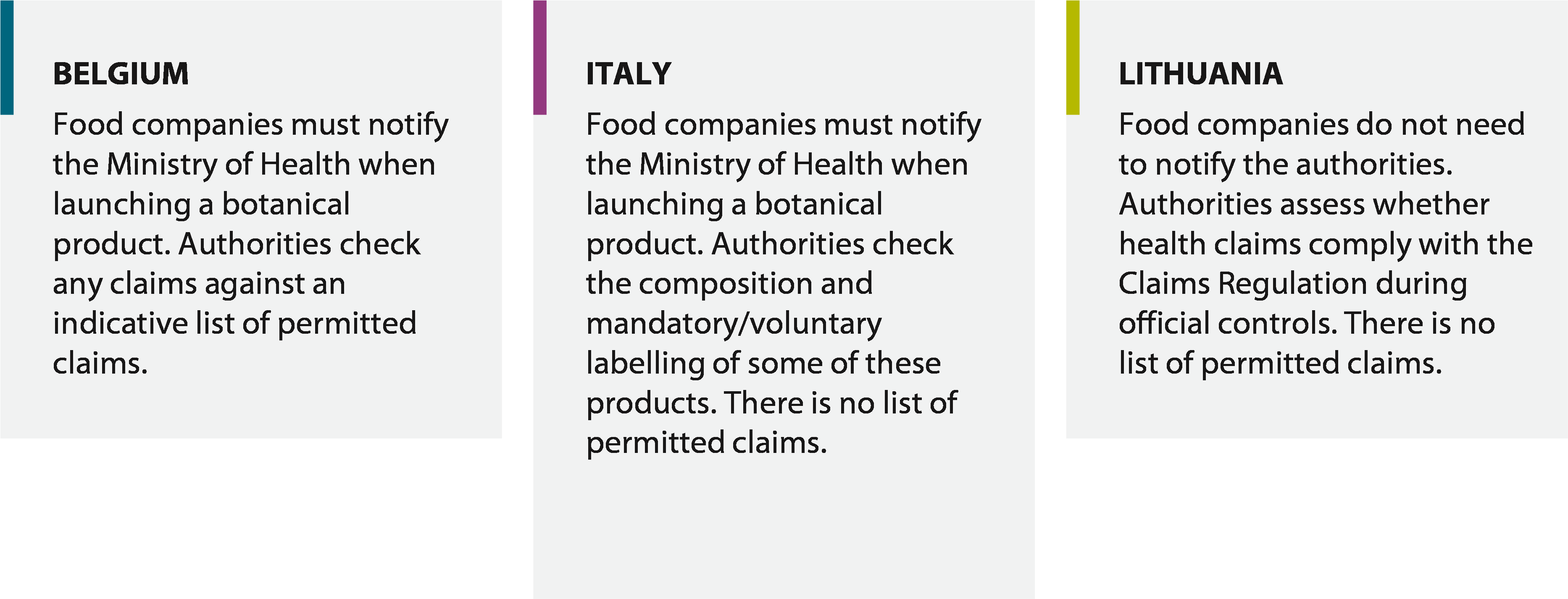 Figure 9 – Differing approaches to botanical claims in the member states we covered