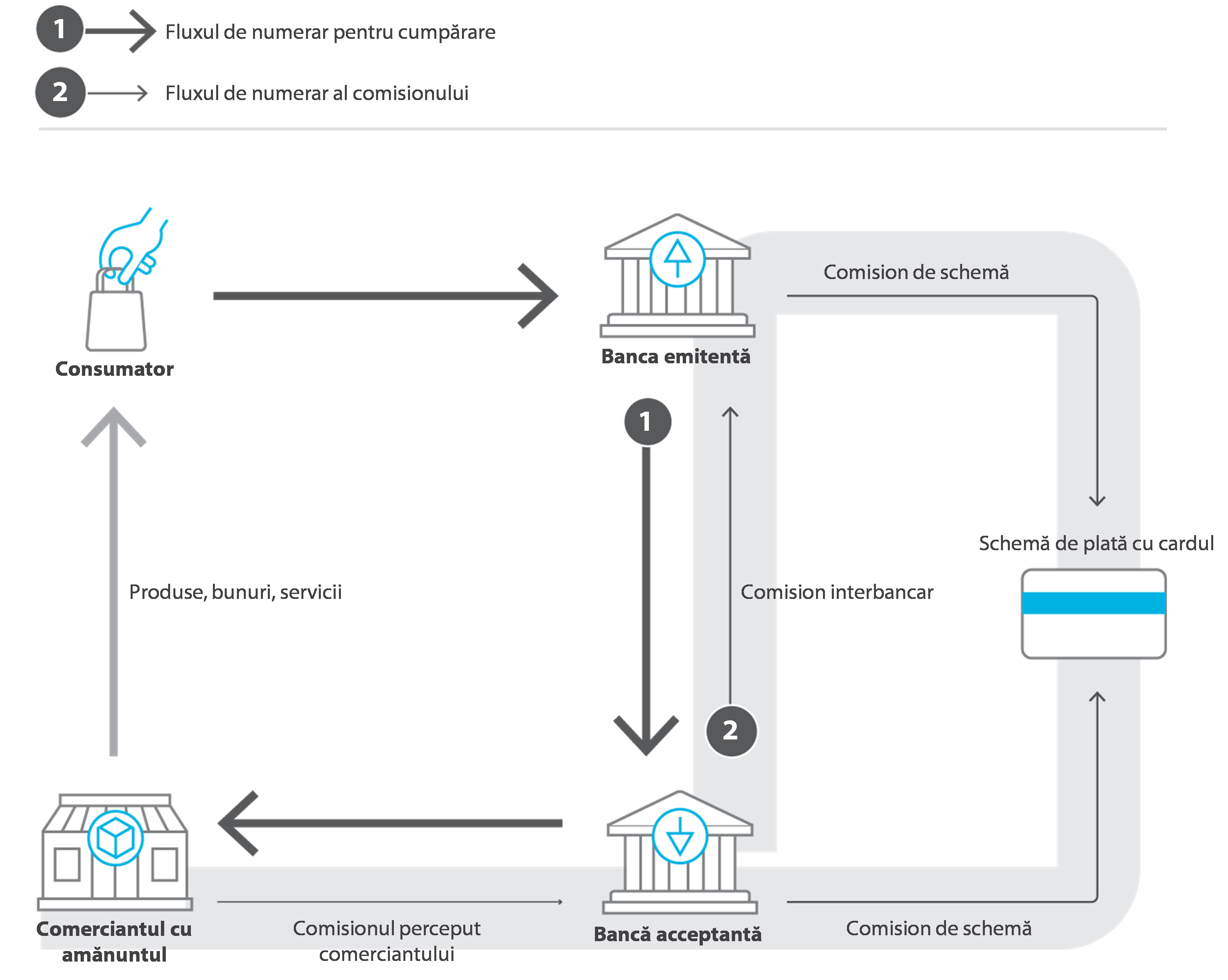 28 Un flux tipic de numerar în cazul plății cu cardul implică mai multe tipuri de comisioane (a se vedea figura 4):