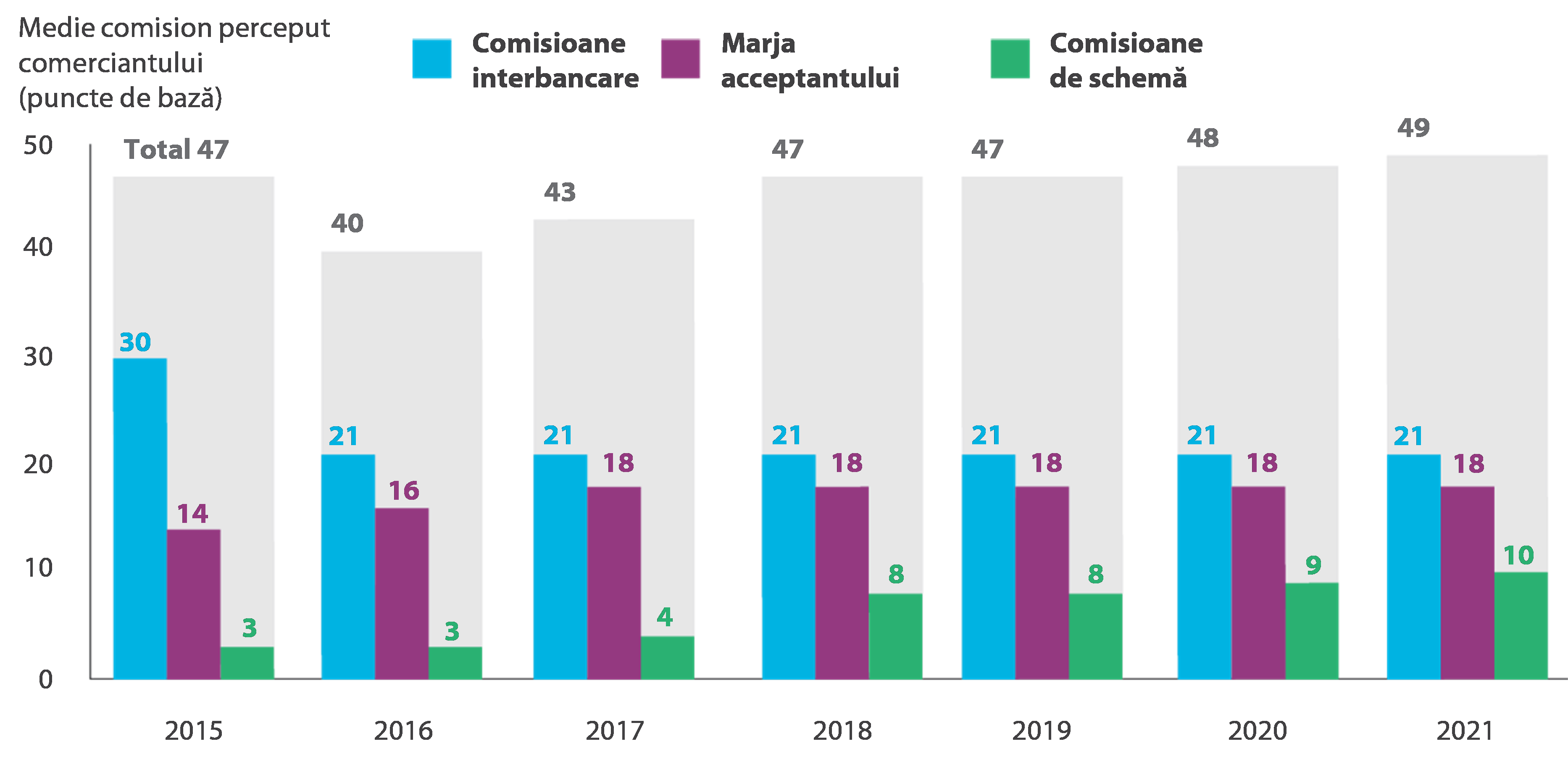 42 Autoritatea de Reglementare a Sistemelor de Plăți din Regatul Unit a analizat modificări similare efectuate de schemele internaționale de carduri în ceea ce privește comisioanele de schemă și comisioanele de procesare între 2017 și 2021, pentru a clarifica constrângerile concurențiale în momentul stabilirii comisioanelor26. Nu există o astfel de analiză pentru UE, deși ea ar contribui la o mai bună înțelegere a evoluțiilor de pe piața plăților pentru a face alegeri în cunoștință de cauză la nivel de politici. Australia, la fel ca UE, aplică un plafon pentru comisioanele interbancare, dar permite totodată suprataxarea costurilor directe în limite clare27. Comisioanele percepute comercianților pentru servicii în Australia au scăzut semnificativ din 2005.